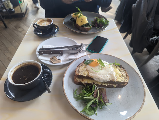 Lovely coffee and brunch. Benedict was delicious and the Ranchos Heuvos. Sat outside in the Sunshine on Leith! ☀️