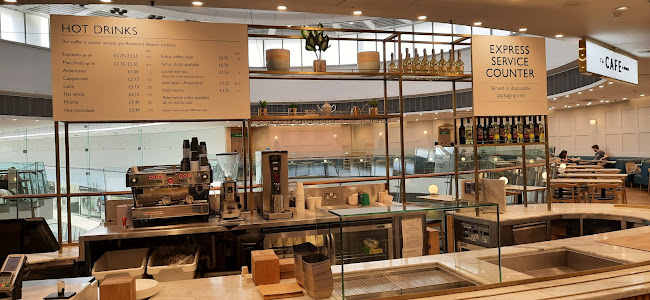 On top floor of John Lewis, accessed through main store. Hot meals, snacks and hot and cold drinks. Homemade style cakes, meals look healthy. Prices seem reasonable. Seating usually available, quite a quiet spot, good view of shoppers below. Young staff friendly, probably students.