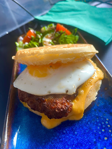 Friendly staff, lovely food. Nice decor, outside seating, which was great for us because we have a dog. We had a breakfast roll, the sausage was high quality and the egg was cooked to perfection. Followed by something a little sweet, lemon and biscofe cheesecake, it looked that nice it was a shame to eat it. They also have an evening menu and have themed evenings with a cover artist.