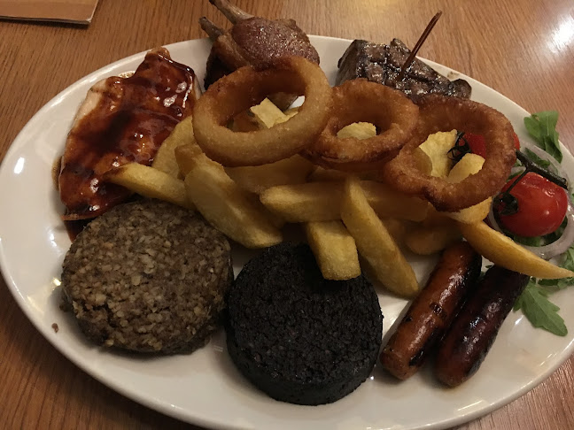 My wife had an amazing steak smothered in melted cheese. I decided on the mixed grill and wow absolutely everything on the plate was amazing, right down to the little sausages. Even the onion rings were brilliant. Best black pudding, haggis, steak, lamb chops I've ever tasted.